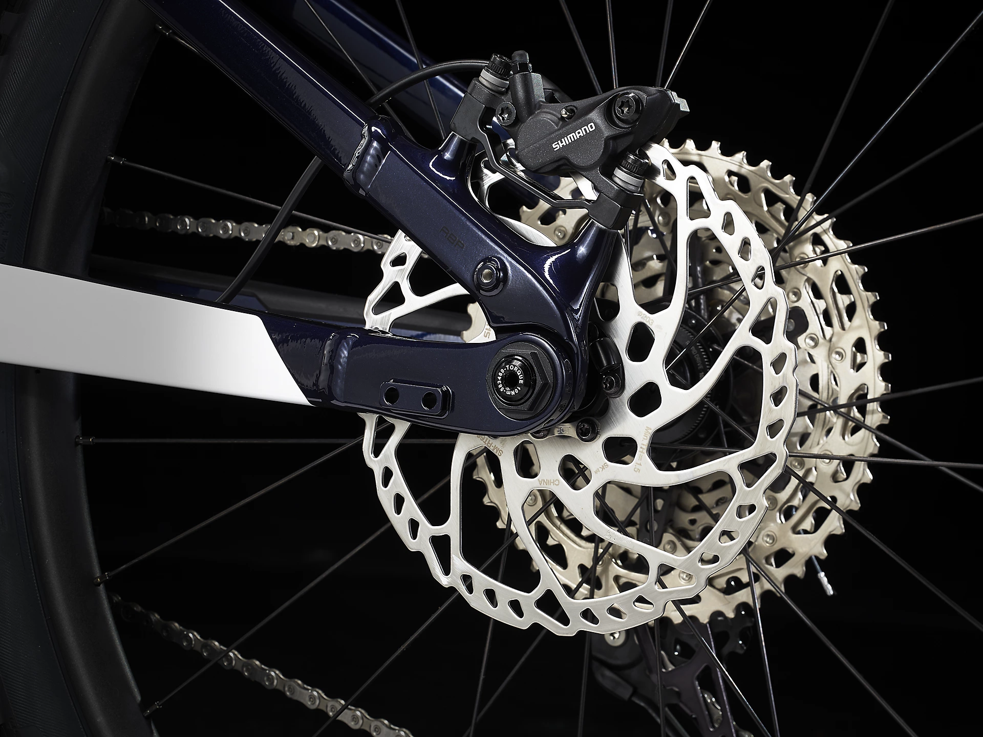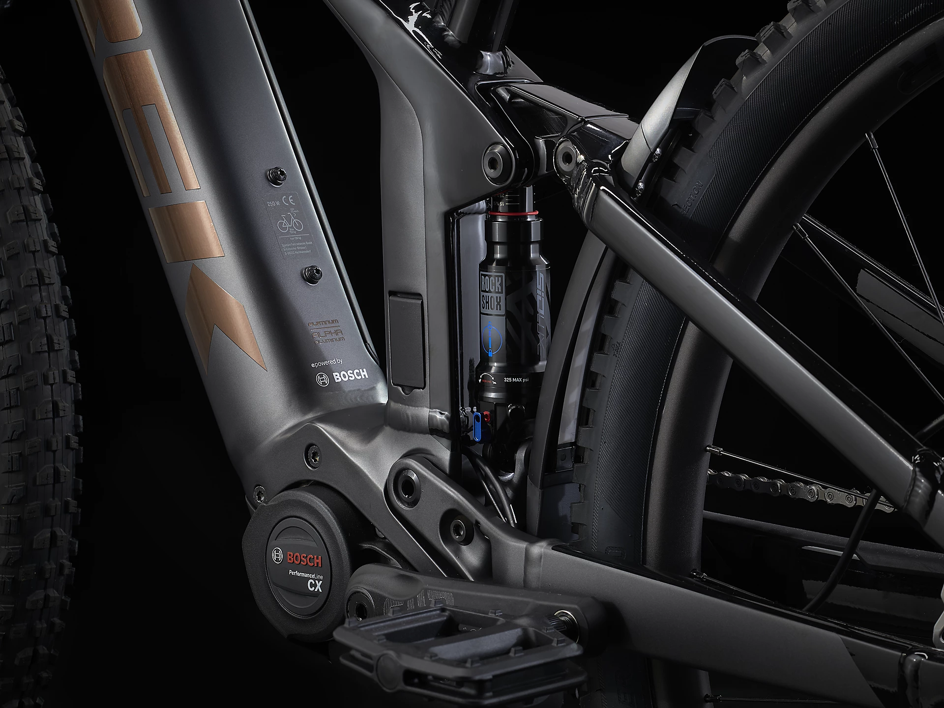 Fuel EXe 9.5 Deore to elektryczny rower górski z zupełnie nowej kategorii. To idealne połączenie roweru ze wspomaganiem i tradycyjnego roweru akustycznego. Zbudowany jest na podstawie ramy z włókna węglowego i kompaktowego silnika, dzięki któremu jedzie lekko, żwawo i cicho. Korzystaj ze wspomagania na długich podjazdach i ciesz się ze zwinności tradycyjnego roweru górskiego na zjazdach. Wyposażony jest w widelec amortyzowany RockShox Gold RL o 150 mm skoku, który bez problemu rozprawia się z rock gardenami oraz płynnie pracujący damper RockShox Deluxe Select+ o skoku 140 mm dbający o wygodę i pochłanianie małych nierówności.